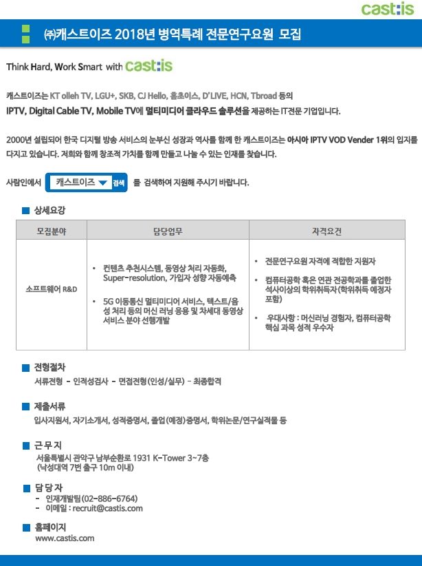 (주)캐스트이즈 채용공고