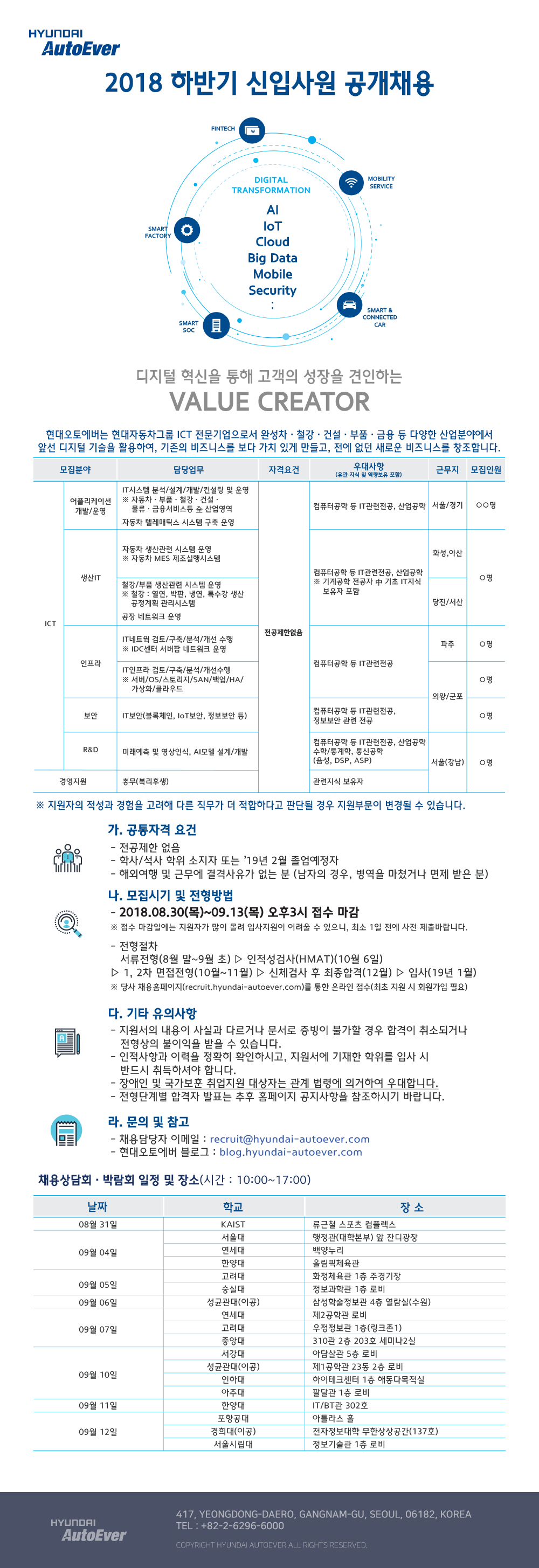 [현대오토에버] 2018 하반기 신입사원 공개채용 안내
