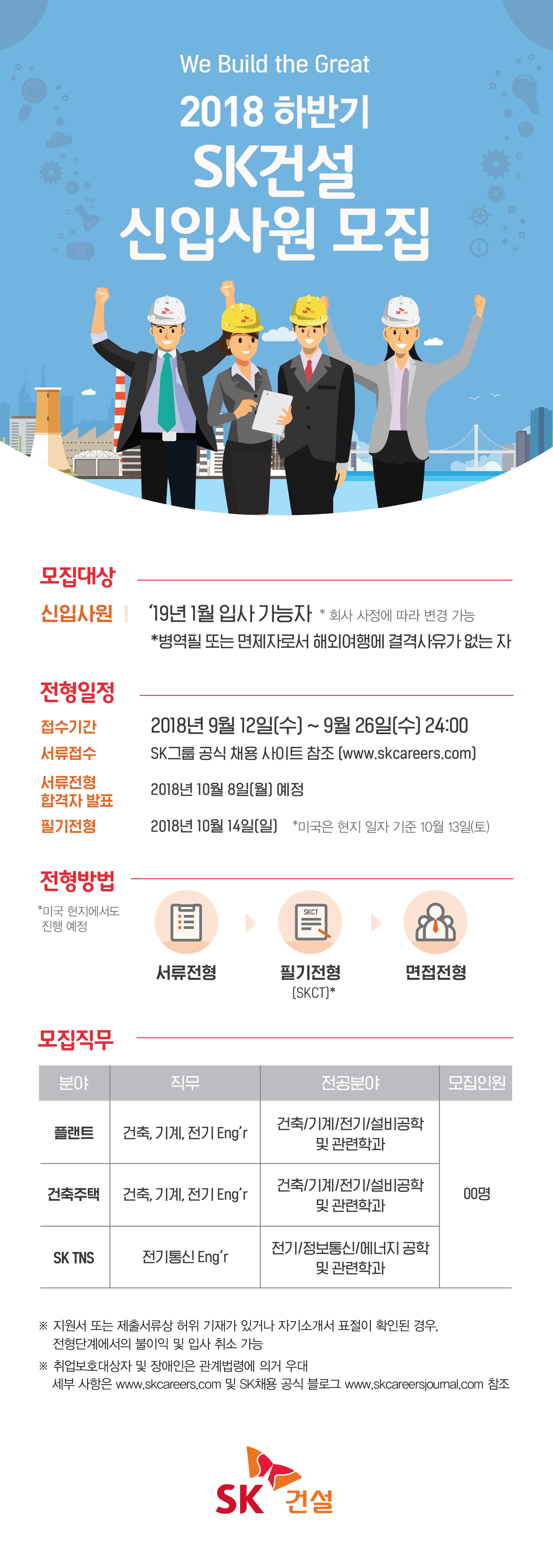 [SK건설] 2018 하반기 신입사원 모집 안내(~9월26일 24시)