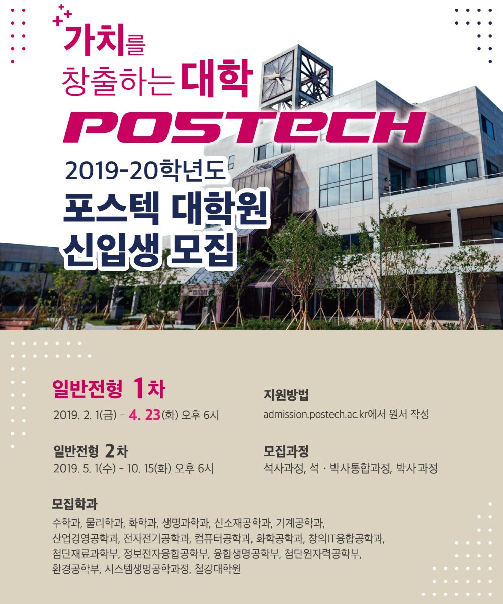 포항공과대학교 캠퍼스 리크루팅이 아래와 같은 일정으로 진행될 예정입니다.