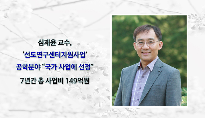 심재윤 교수 ‘선도연구센터지원사업’공학분야 국가사업 선정