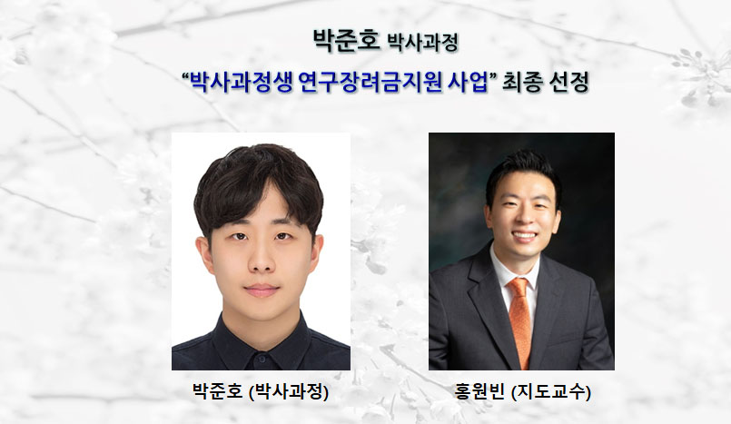 박준호 (박사과정),“박사과정생 연구장려금지원 사업”최종 선정