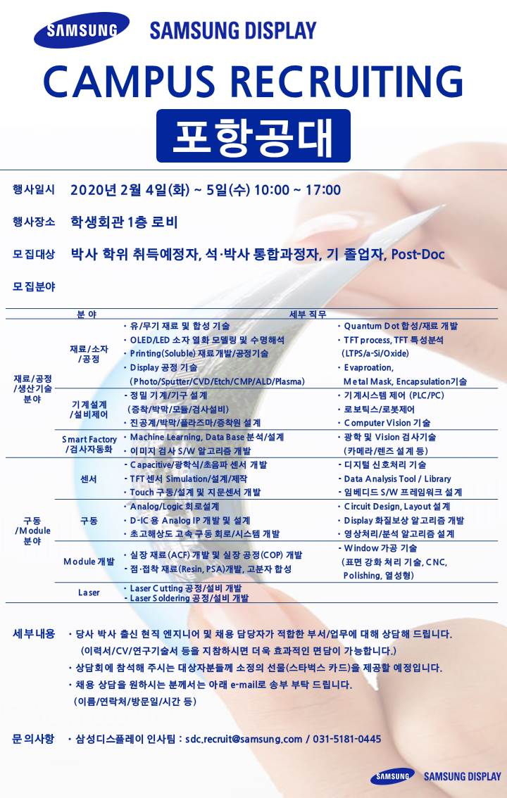 [삼성디스플레이] ‘포항공대 박사 대상 캠퍼스 리크루팅’
