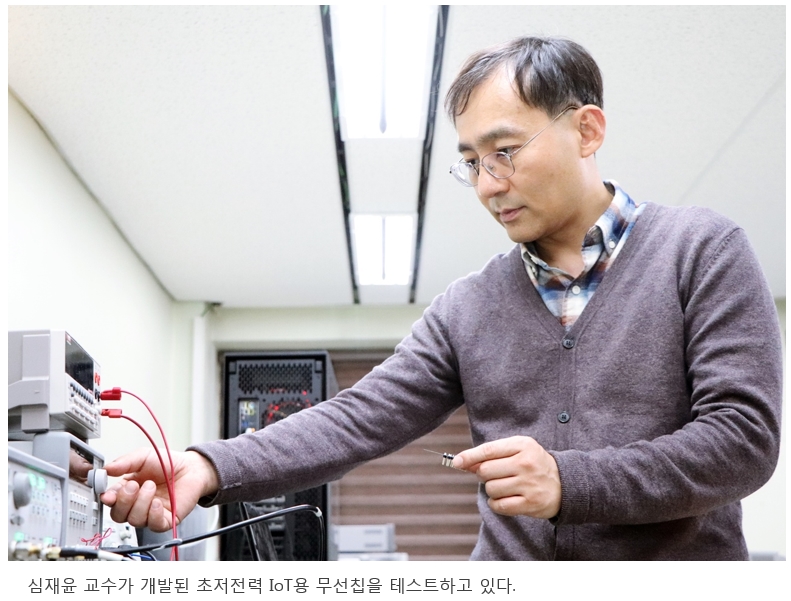 심 교수는 국내 최초로 나노와트(㎻ : 10억 분의 1 와트) 수준의 전력만으로 작동하는 무선 사물인터넷(IoT)용 플랫폼을 단일칩으로 구현해 헬스케어, 스마트시티 등 다양한 IoT 융합 연구의 토대를 마련한 공로를 높이 평가 받았다.