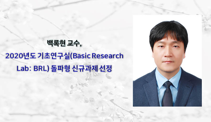 백록현 교수, 2020년도 기초연구실(Basic Research Lab: BRL) 돌파형 신규과제 선정