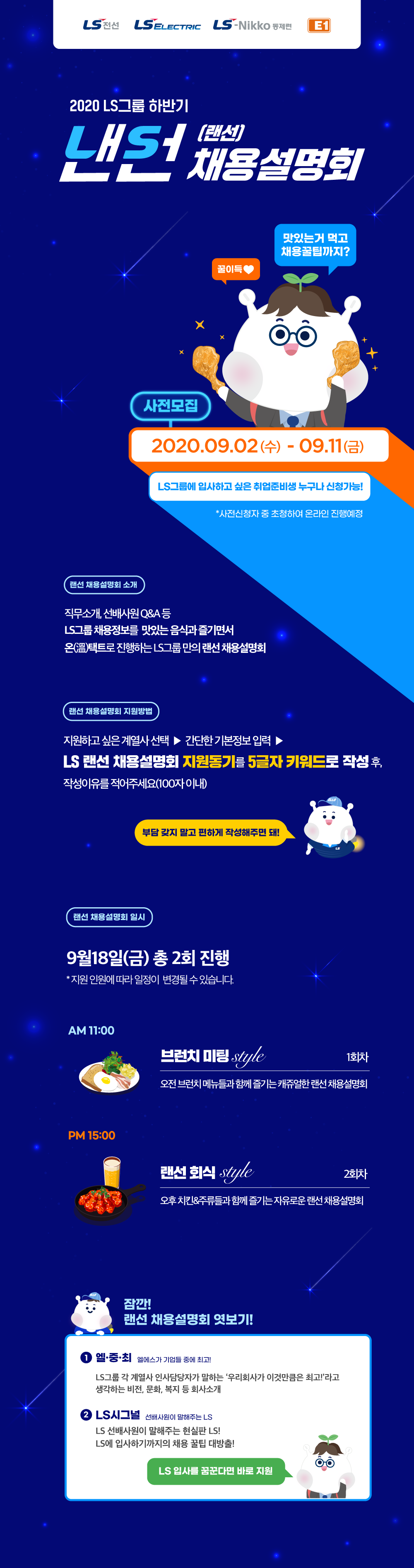 직무소개, 선배사원 Q&A 등 LS그룹 채용정보를 맛있는 음식과 함께 온(溫)택트로 즐기는 LS그룹 만의 랜선 채용설명회 입니다.