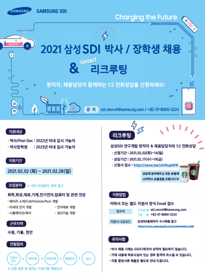 [삼성SDI]박사/박사장학생 채용공고 및 리크루팅