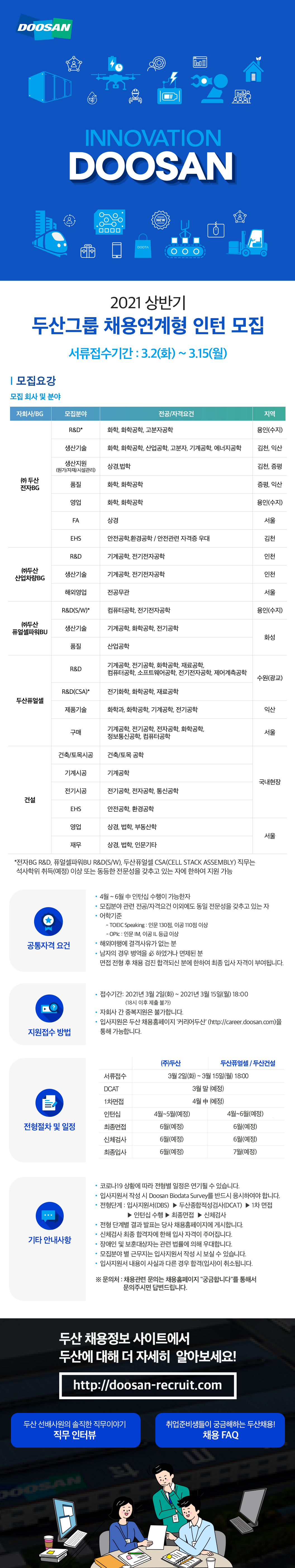 ︎두산그룹 2021 상반기 채용연계형 인턴 모집 (~3/15)