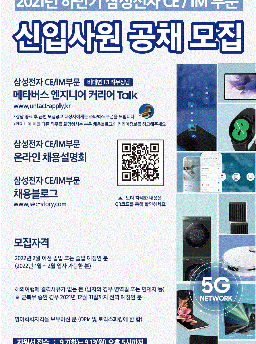 [삼성전자CE/IM] 21년 하반기 신입채용 모집 / 채용설명회 안내