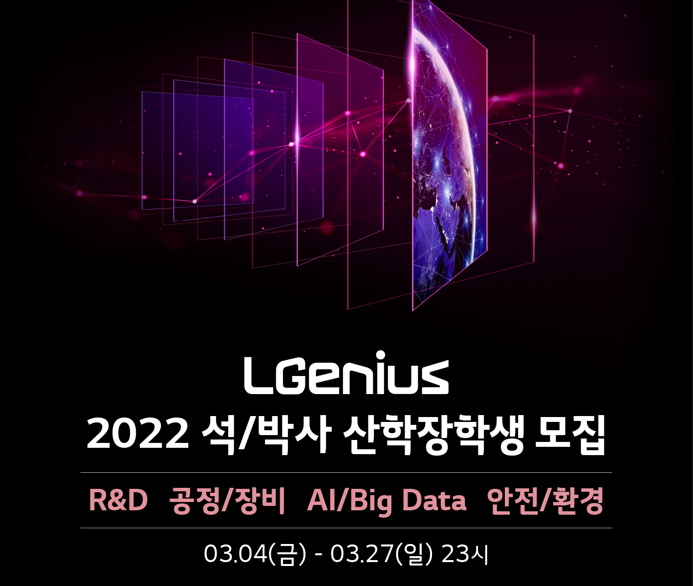 [LG디스플레이] 2022년 상반기 LG디스플레이 LGenius 석/박사 산학장학생 모집 (~3/27 일 23시)