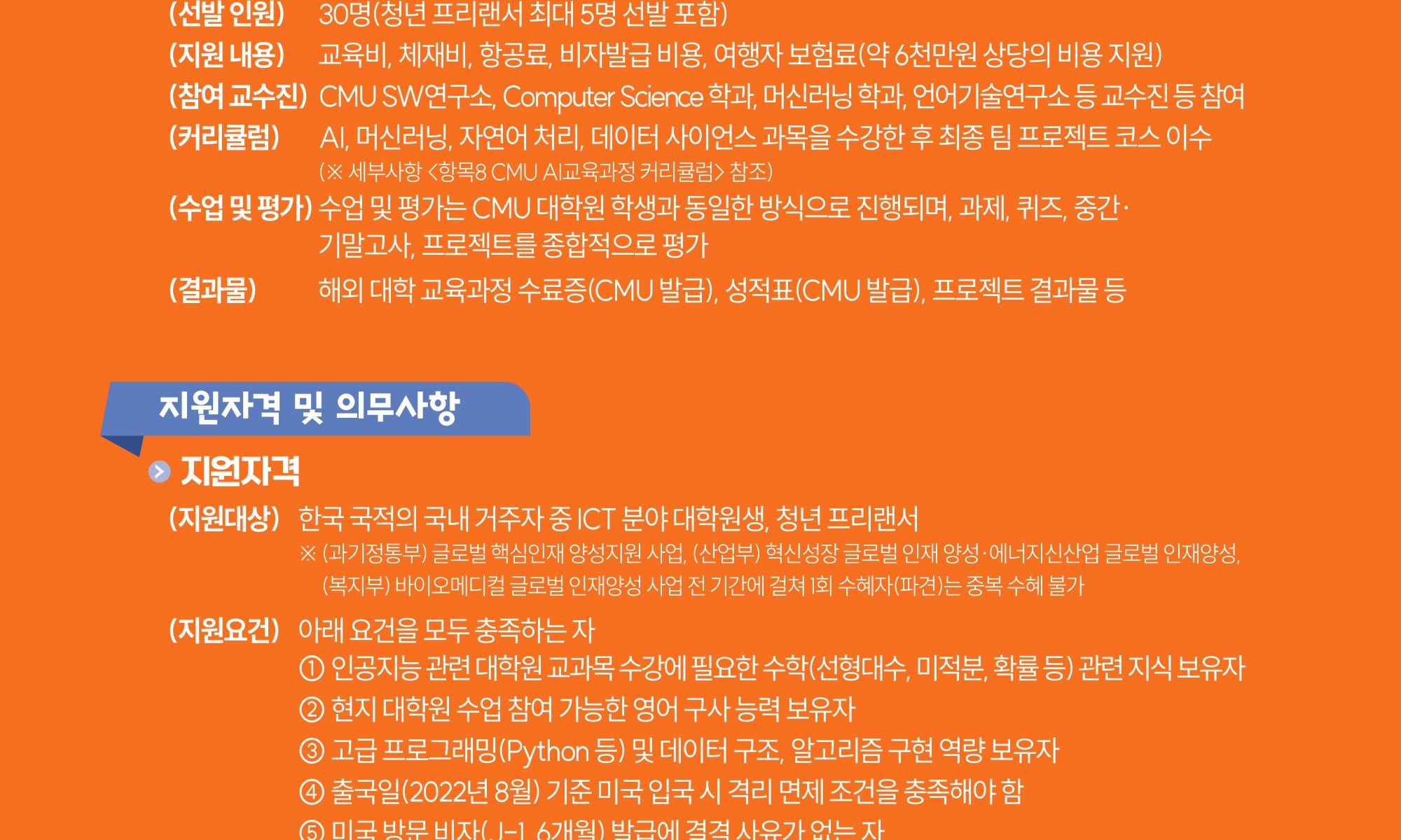 2022년도 미국 Carnegie Mellon University AI 집중 교육프로그램 파견 교육생 모집(~5/12 목)