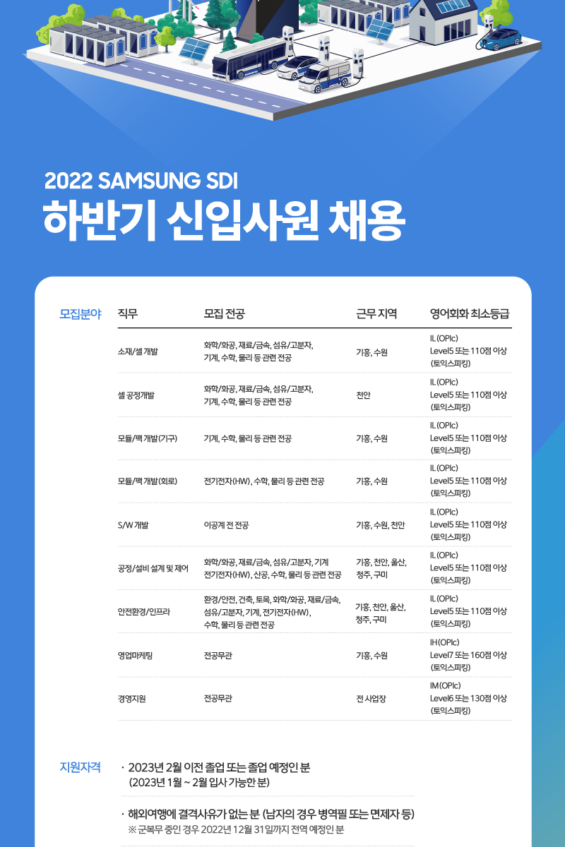 [삼성SDI] 2022년 하반기 3급 신입사원 선발
