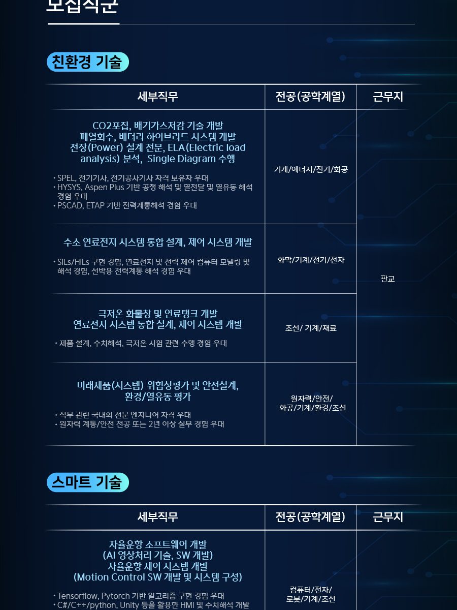 . 모집 직군 : [친환경기술] 탄소저감, 연료전지, 에너지효율 등 기계/조선/화공 관련