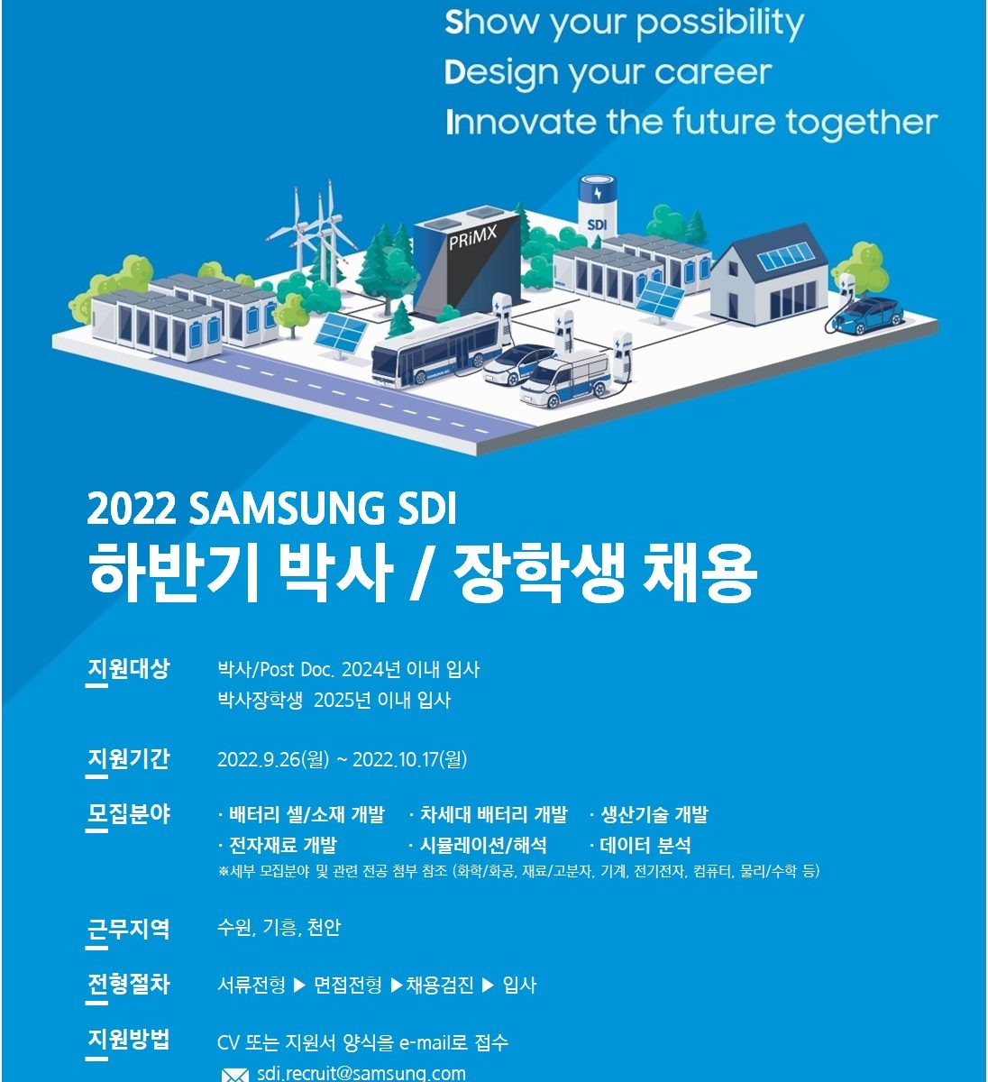 [삼성SDI] 하반기 박사/장학생 채용 (~10/17 월)