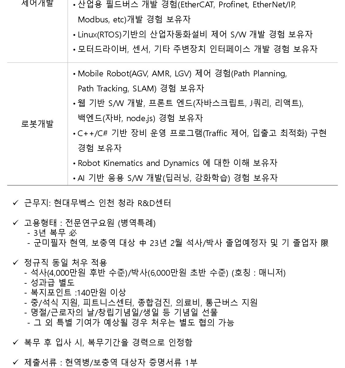 [현대무벡스] 전문연구요원(병역특례) 모집 (~1/31 화)