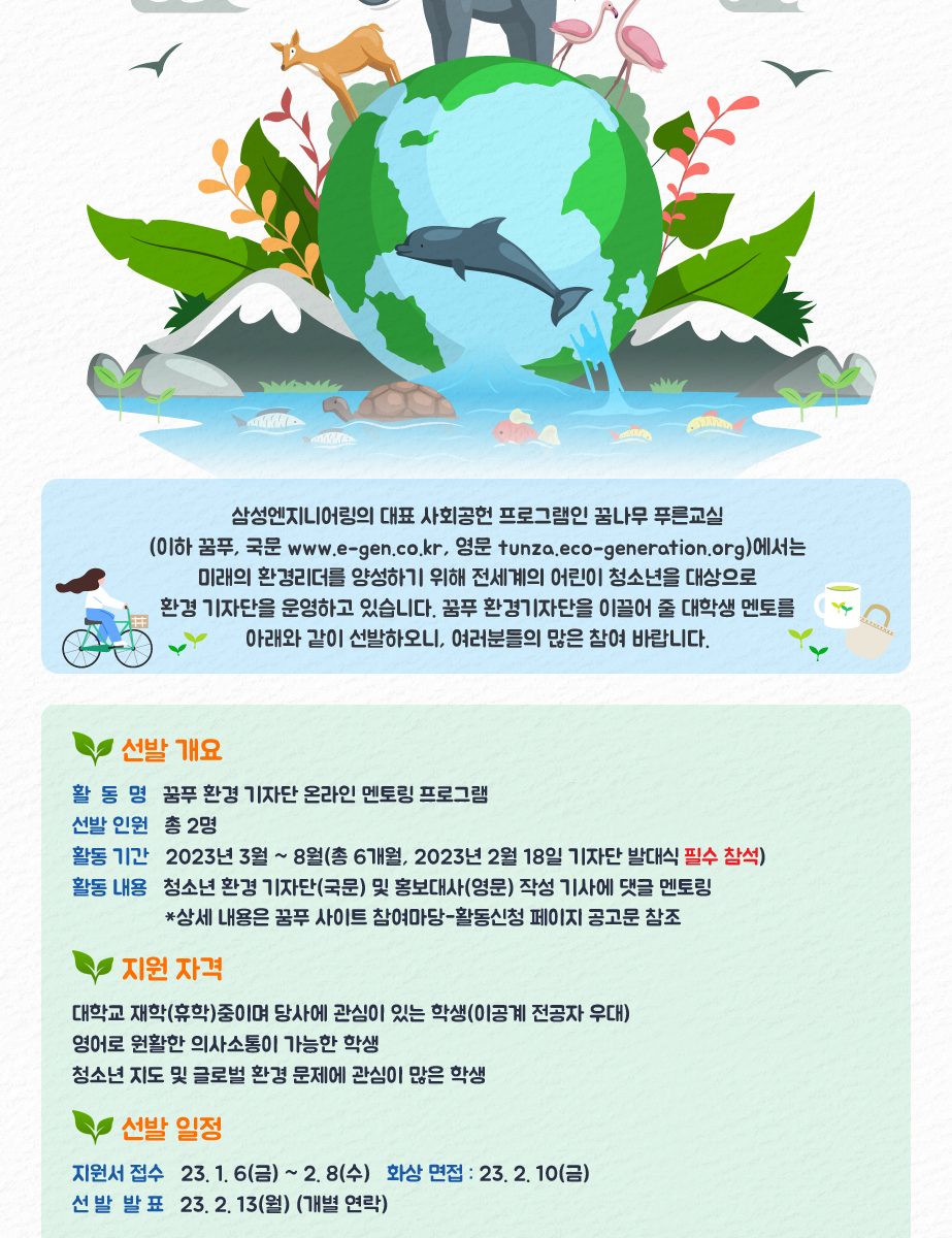 [삼성엔지니어링] 23년 상반기 꿈나무 푸른교실 대학생 멘토 모집 (~2/13 월)