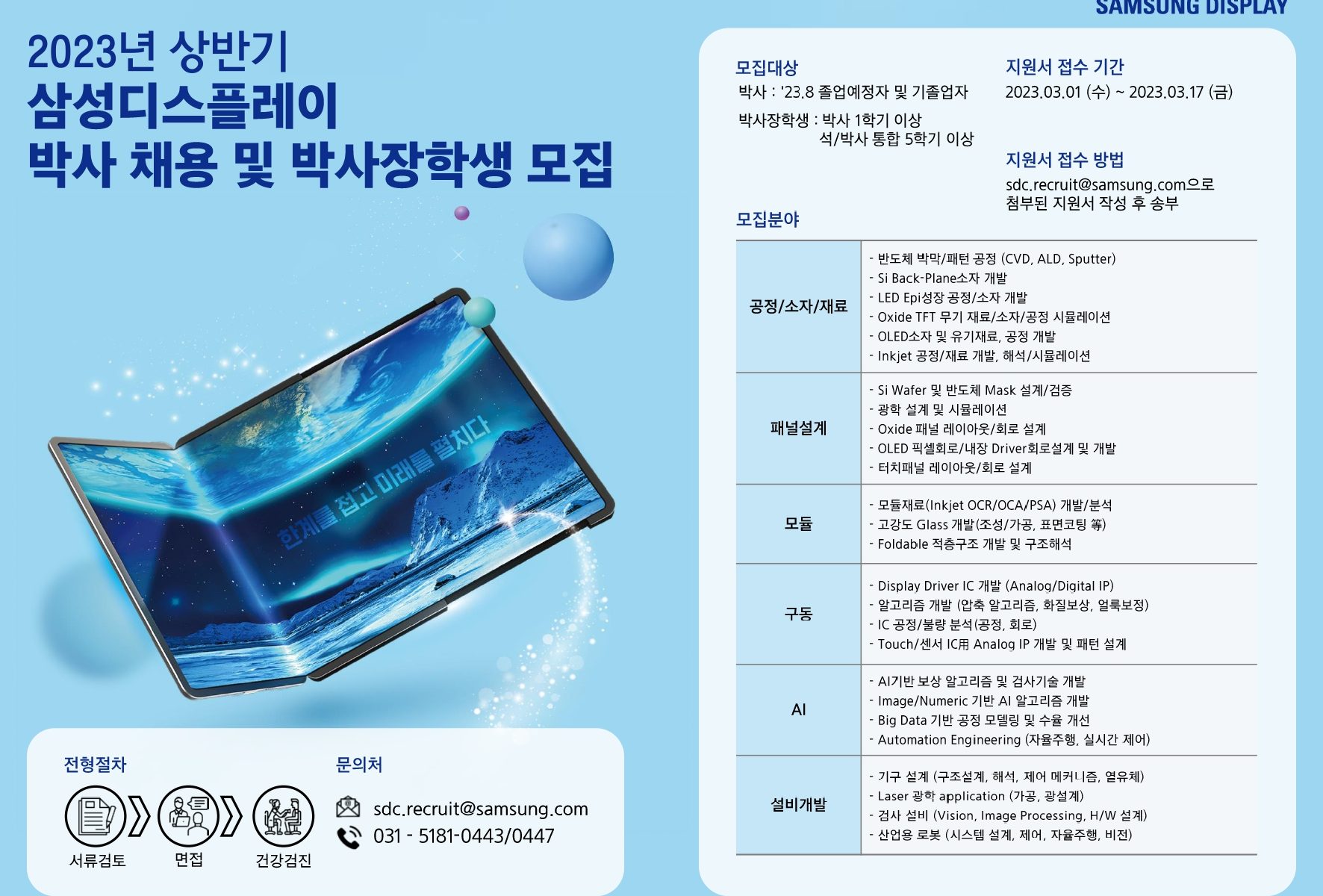 [삼성디스플레이] 23.上 박사채용 및 박사장학생 모집 (~3/17 금)