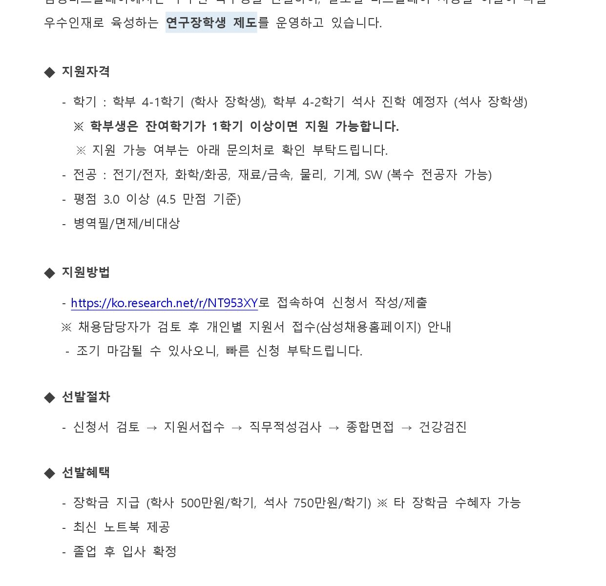 [삼성엔지니어링] 23년 상반기 연구장학생 모집 (~3/15 수)