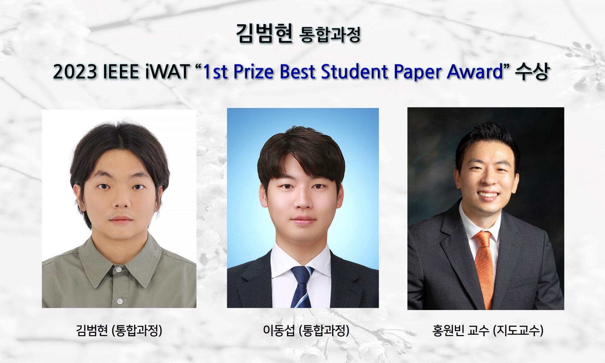 김범현 (통합과정), 2023 IEEE iWAT에서“1st Prize Best Student Paper Award”수상