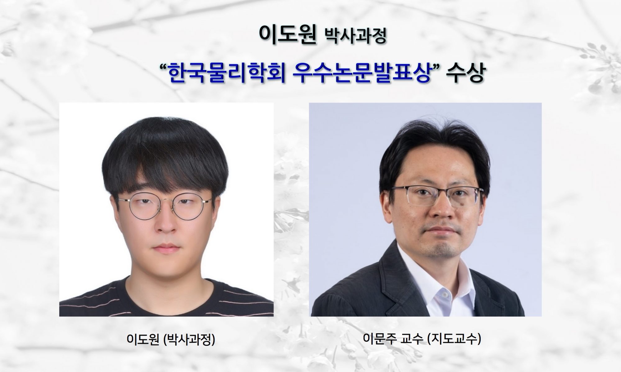 이도원 (박사과정) “한국물리학회 우수논문발표상 수상”