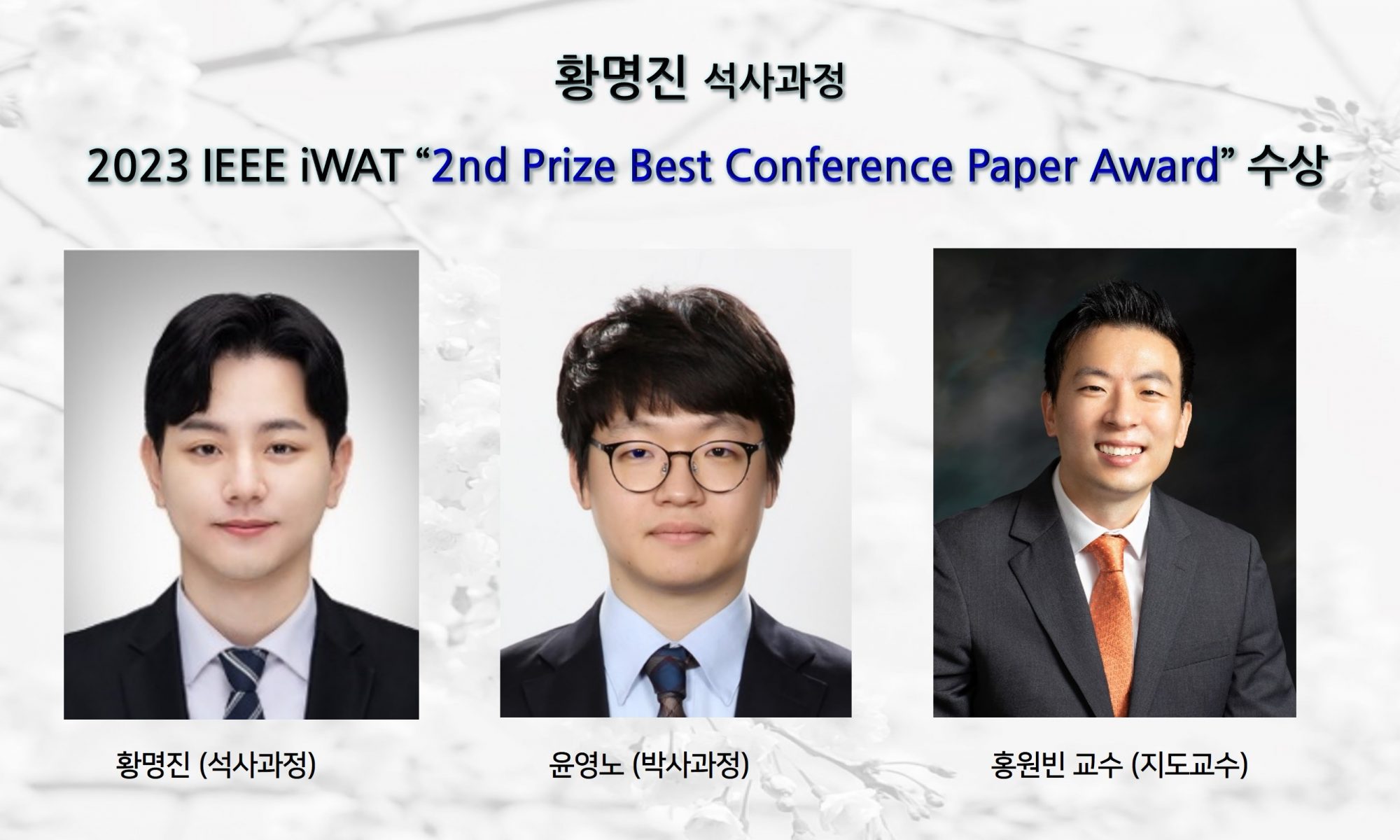 황명진 (석사과정), 2023 IEEE iWAT에서“2nd Prize Best Conference Paper Award”수상