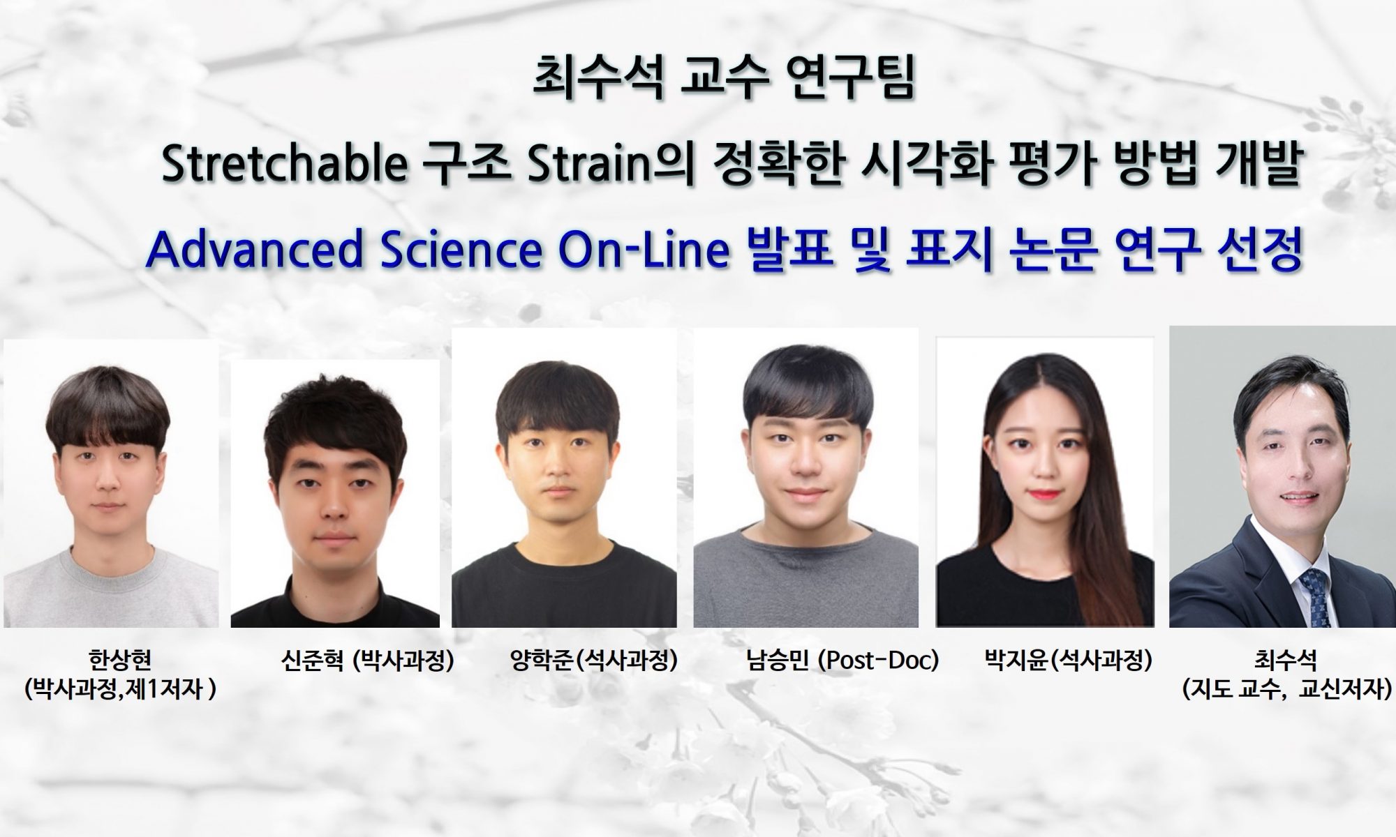포항공대 최수석 교수 연구팀, Stretchable 구조 Strain의 정확한 시각화 평가 방법 개발 Advanced Science On-Line 발표 및 표지 논문 연구 선정
