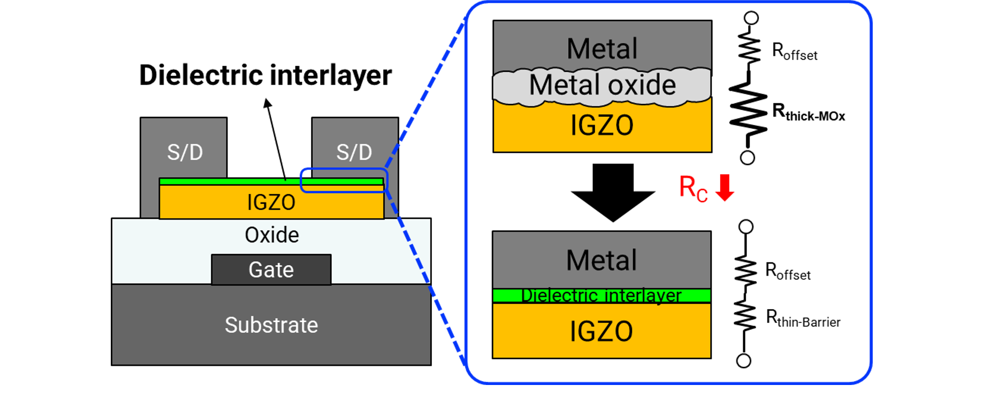 산화물 반도체는 다양한 장점으로 인해 디스플레이 산업에서 사용되고 있지만, 실리콘 소재에 비해 낮은 전자 이동도와 높은 접촉 저항으로 인해 화소 밀도가 높은 차세대 디스플레이에는 적용이 어려웠다.