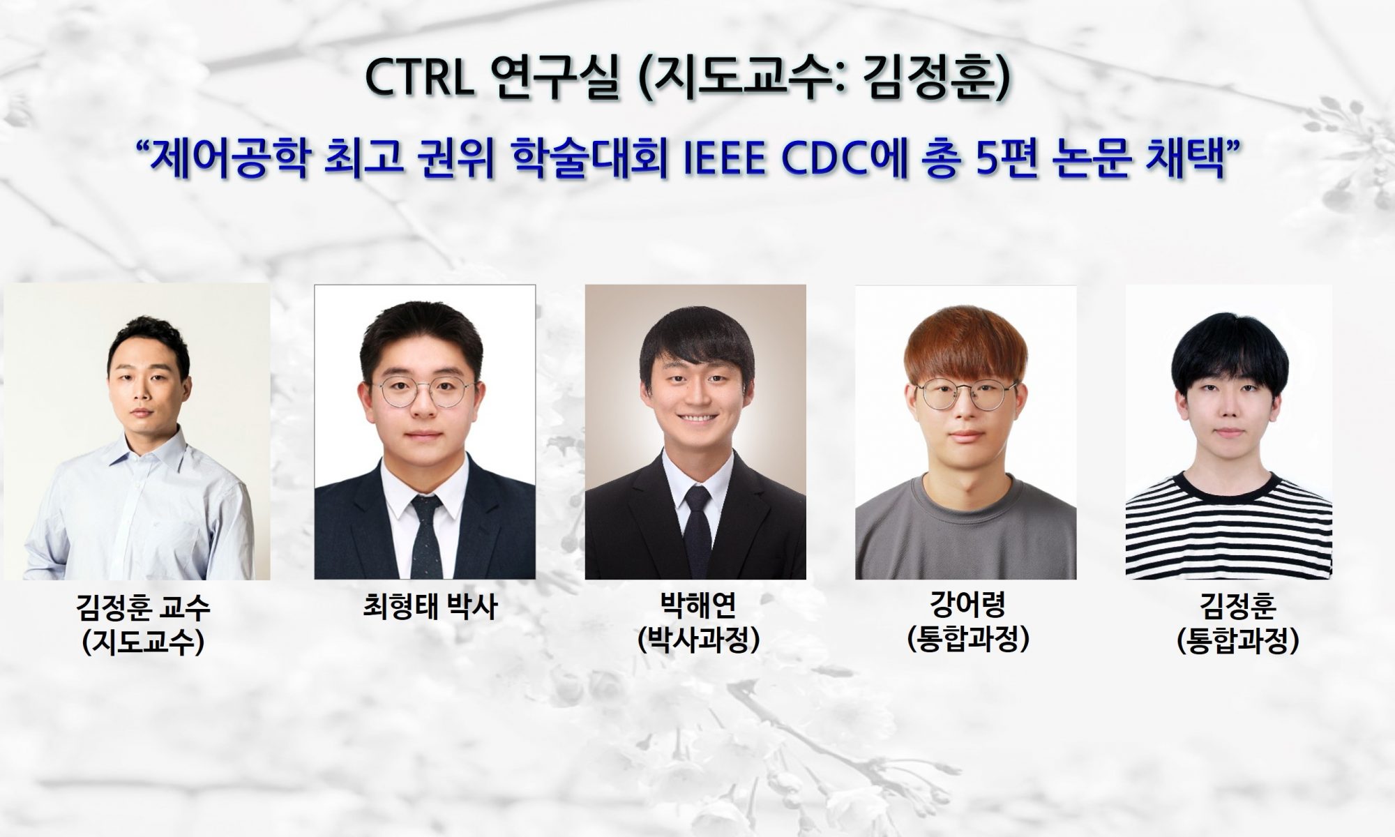 CTRL 연구실,“제어공학 최고 권위 학술대회 IEEE CDC에 총 5편 논문 채택”