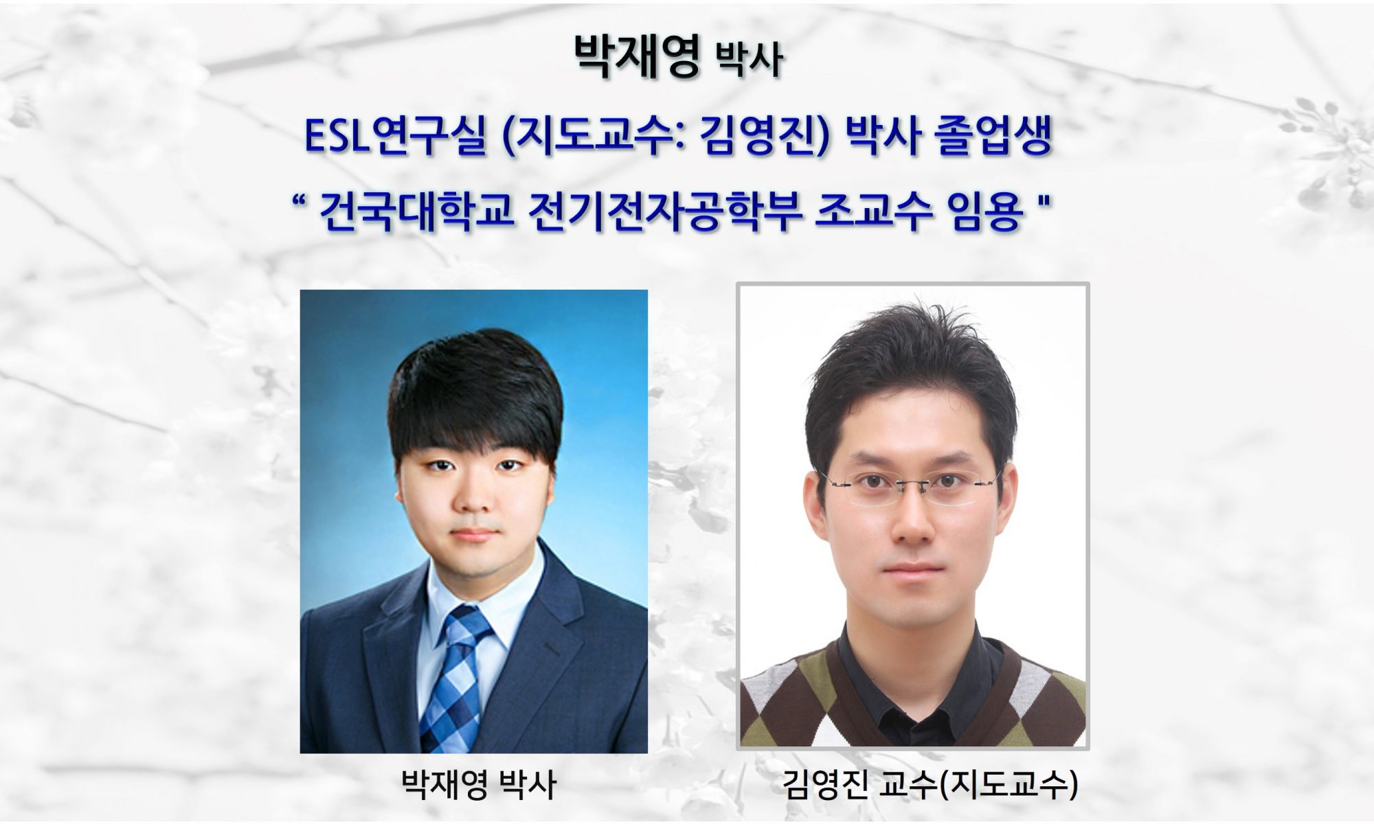 포항공과대학교 전자전기공학과 에너지시스템연구실(ESL)에서 박사학위를 취득한 박재영 박사(지도교수: 김영진 교수)가 지난 2025년 7월 건국대학교 전기전자공학부 조교수로 부임하였다.